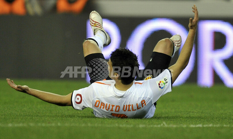 後半23分にダビド・ビジャ(David Villa)がシーズン11得点目となるペナルティーキック(PK)を決めて1点を返したがバレンシアは、同36分にディエゴ・カストロ(Diego Castro)にゴールを奪われ1-3とリードを広げられた。その後バレンシアは試合終了間際にフアン・マヌエル・マタ(Juan Manuel Mata)がゴールを決めたが、カストロのゴールが致命的なものとなった。(c)AFP/Phil Seery