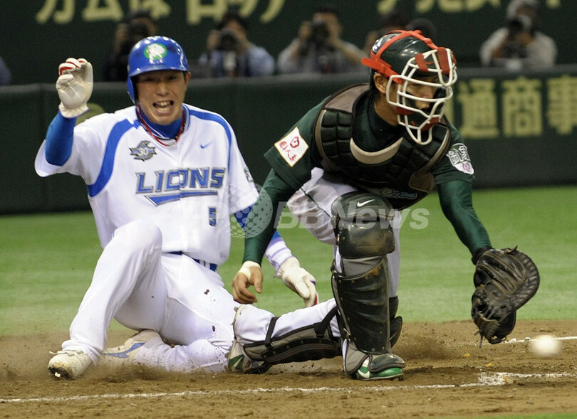 スポーツ 野球 埼玉西武ライオンズ アジアシリーズを制す 2008年11月16日 18:01 発信地:東京 [ アジア・オセアニア 東京 ] このニュースをシェア ‹ › ❮ 5/9 ❯ 統一セブンイレブンライオンズ戦の9回にサヨナラのホームに生還する埼玉西武ライオンズの石井義人(%%Yoshihito Ishii%%、左)。(2008年11月15日撮影)(c)AFP/TOSHIFUMI KITAMURA 画像作成中 ! 【11月16日 AFP】野球、アジアシリーズ2008(Asia Series 2008)第7試合、埼玉西武ライオンズ(Saitama Seibu Lions)対統一セブンイレブンライオンズ(Uni-President 7-Eleven Lions、台湾)。試合は西武ライオンズが1-0でサヨナラ勝ちを収め、アジアシリーズ2008を制した。(c)AFP 野球 一覧へ> メディア・報道関係・法人の方向け 写真・動画 購入のお問合せ>