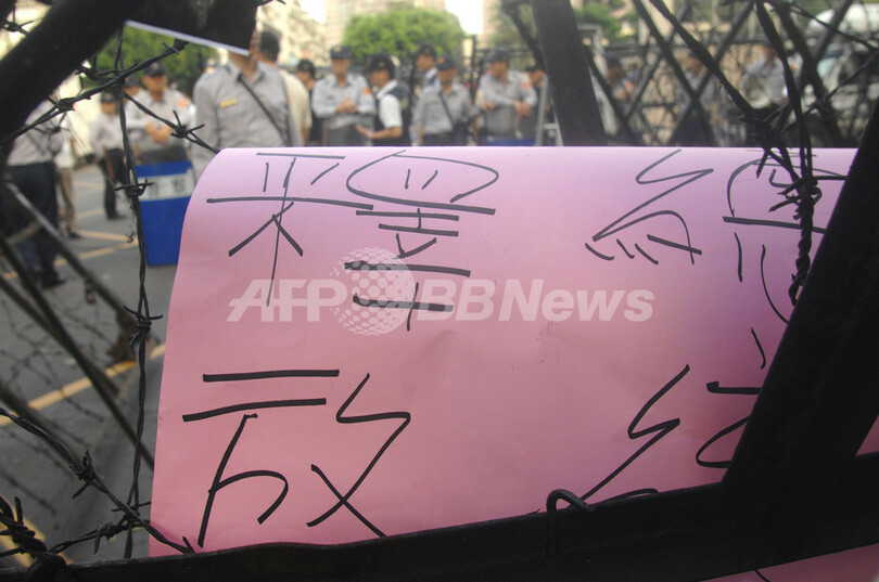 陳氏の事務所では22日に台北市内の公園で支持者らによる大規模な抗議集会を計画している。(c)AFP