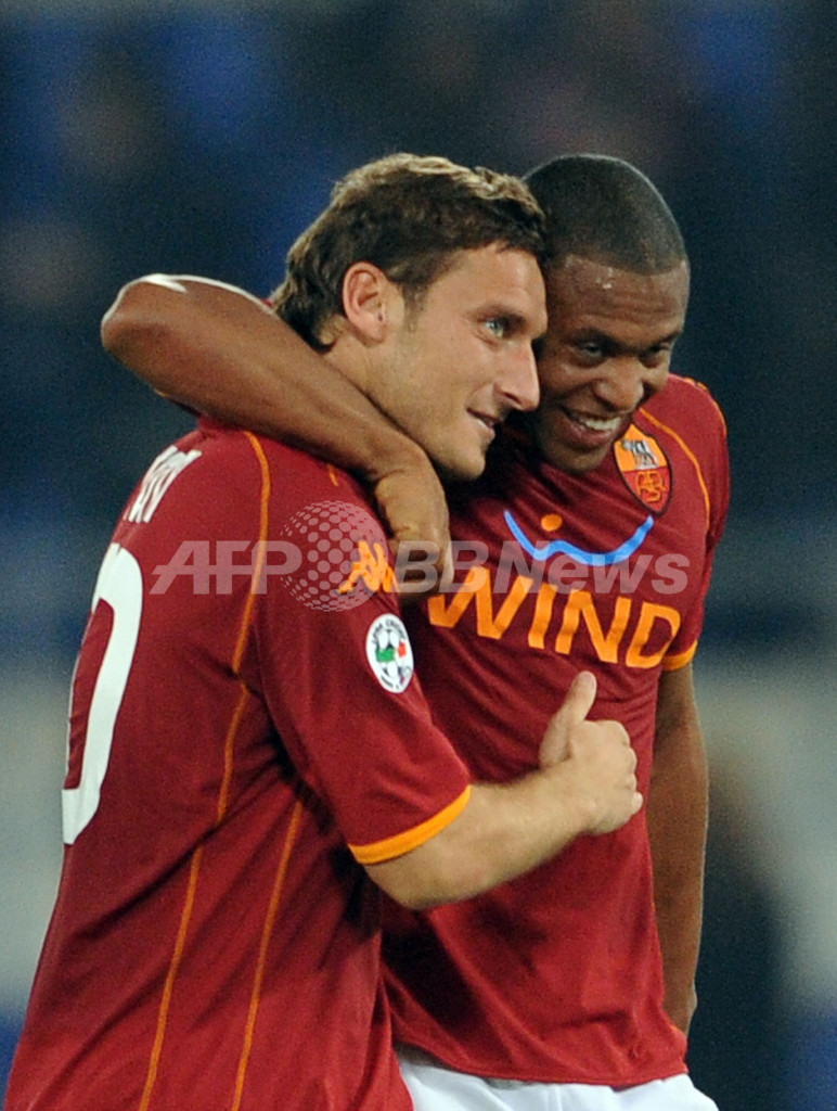 スポーツ サッカー ASローマ バプティスタのゴールでローマダービーを制す 2008年11月17日 8:55 発信地:ローマ/イタリア [ ヨーロッパ イタリア ] このニュースをシェア ‹ › ❮ 1/34 ❯ 後半5分に先制ゴールを決めたチームメイトのジュリオ・バプティスタを祝福するASローマのフランチェスコ・トッティ(%%Francesco Totti%%)。(2008年11月16日撮影)(c)AFP/CHRISTOPHE SIMON 画像作成中 ! 【11月17日 AFP】08-09イタリア・セリエA第12節、ASローマ(AS Roma)対ラツィオ(SS Lazio)。試合は降格圏間近で低迷するASローマが後半5分にジュリオ・バプティスタ(Julio Baptista)が挙げたゴールでリーグ上位につけるラツィオとのローマダービーを制し、シーズン3勝目を挙げた。(c)AFP/Barnaby Chesterman サッカー 一覧へ> メディア・報道関係・法人の方向け 写真・動画 購入のお問合せ>