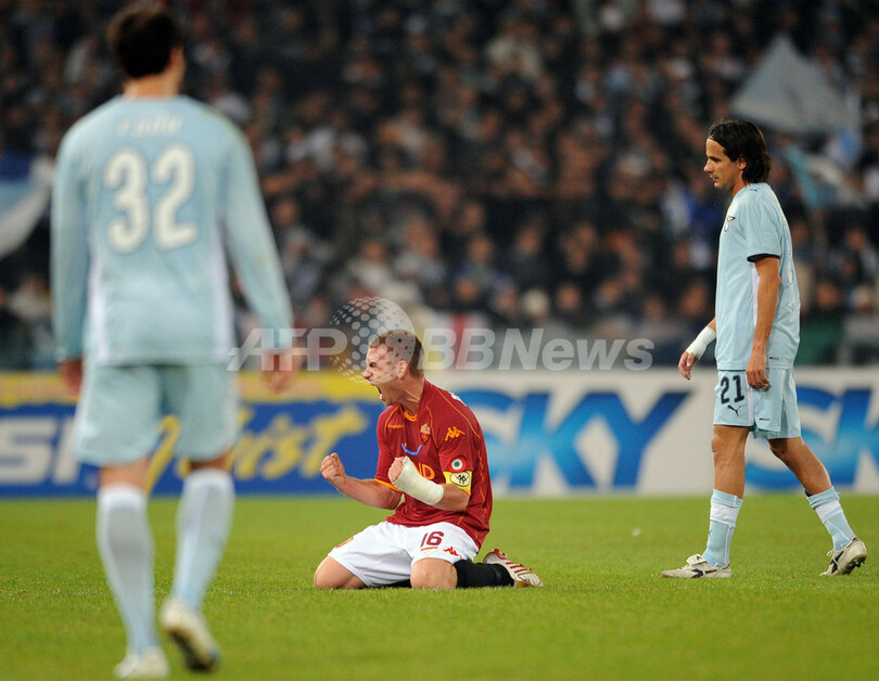 スポーツ サッカー ASローマ バプティスタのゴールでローマダービーを制す 2008年11月17日 8:55 発信地:ローマ/イタリア [ ヨーロッパ イタリア ] このニュースをシェア ‹ › ❮ 5/34 ❯ ラツィオとのローマダービーを制し歓喜するASローマのダニエレ・デ・ロッシ(%%Daniele De Rossi%%)。(2008年11月16日撮影)(c)AFP/CHRISTOPHE SIMON 画像作成中 ! 【11月17日 AFP】08-09イタリア・セリエA第12節、ASローマ(AS Roma)対ラツィオ(SS Lazio)。試合は降格圏間近で低迷するASローマが後半5分にジュリオ・バプティスタ(Julio Baptista)が挙げたゴールでリーグ上位につけるラツィオとのローマダービーを制し、シーズン3勝目を挙げた。(c)AFP/Barnaby Chesterman サッカー 一覧へ> メディア・報道関係・法人の方向け 写真・動画 購入のお問合せ>