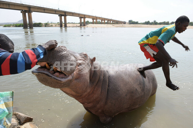 ニュース ライフ こぼれ話 子どもや旅行者とも仲良し、カメルーンのカバ「アフリカ」ちゃん 2008年11月18日 6:45 発信地:ガルア/カメルーン [ アフリカ カメルーン ] このニュースをシェア ‹ › ❮ 8/13 ❯ カメルーンのガルア(Garoua)で、カバの「アフリカ」の背に乗る漁師のLiman Boucar Souaibouさん(右、2008年11月17日撮影)。(c)AFP/ISSOUF SANOGO 画像作成中 ! 【11月18日 AFP】カメルーン・ガルア(Garoua)の漁師Liman Boucar Souaibouさんは16年かけて、体重4トンのカバ「アフリカ」ちゃんを子どもたちや旅行者になつくようにしつけた。(c)AFP ライフ 一覧へ> メディア・報道関係・法人の方向け 写真・動画 購入のお問合せ>