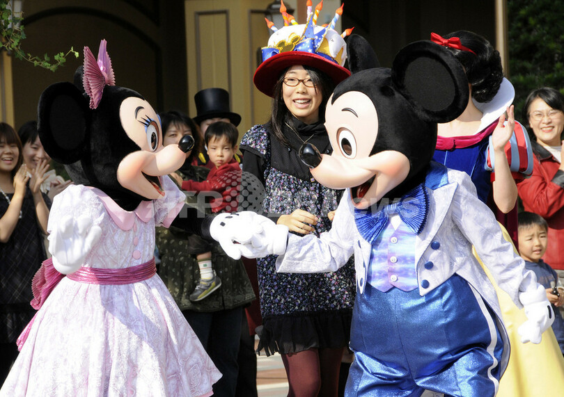 千葉県浦安市の東京ディズニーリゾート(TDR)内のホテルでは、11月18日生まれの人たちが招かれ、ミッキーとの誕生会に参加した。80年前の1928年11月18日は、ウォルト・ ディズニー(Walt Disney)のアニメ映画『蒸気船ウィリー(Steamboat Willie)』が公開された日。(c)AFP