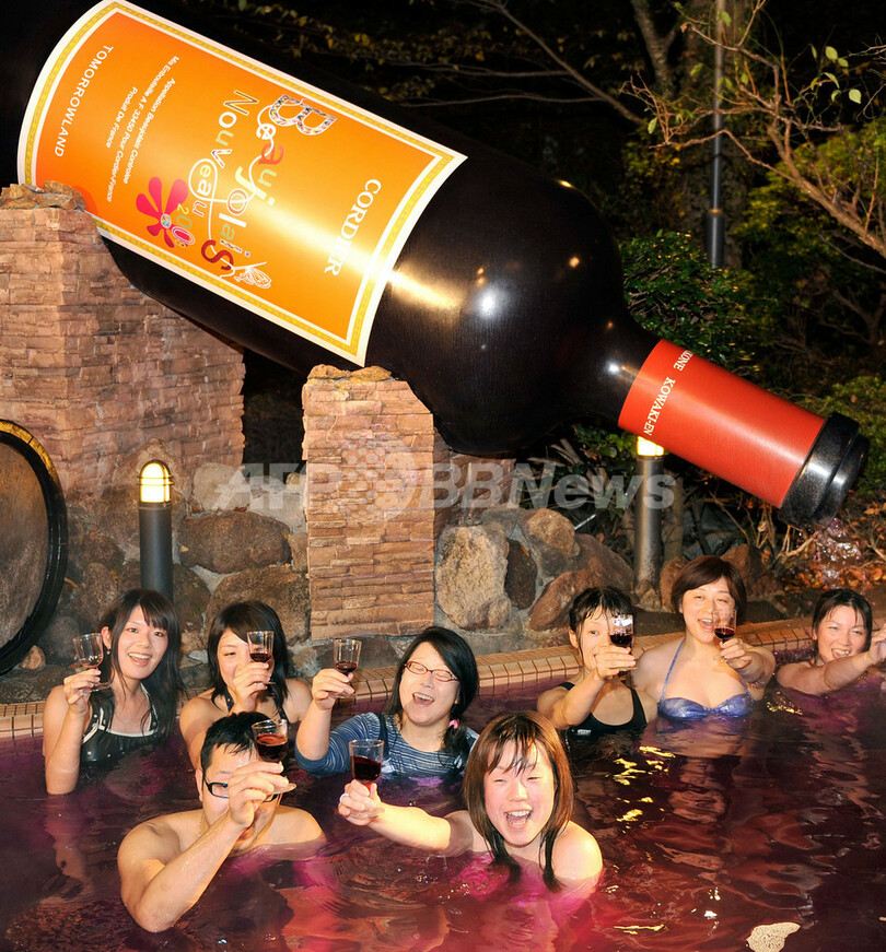 ニュース ライフ こぼれ話 「ボジョレー・ヌーボー風呂」、今年も開始 2008年11月20日 4:00 発信地:箱根/神奈川 [ アジア・オセアニア 神奈川 ] このニュースをシェア ‹ › ❮ 2/3 ❯ 神奈川県箱根町の温泉施設、箱根小涌園ユネッサン(Hakone Kowakien Yunessun)で、20日午前0時から始まった「ボジョレー・ヌーボー風呂」で、新酒ワイン「ボジョレー・ヌーボー(Beaujolais Nouveau)」の解禁を祝う人びと。(2008年11月20日撮影)。(c)AFP/Toru YAMANAKA 画像作成中 ! 【11月20日 AFP】2008年のボジョレー・ヌーボー(Beaujolais Nouveau)が20日午前0時に解禁され、神奈川県箱根町の温泉施設、箱根小涌園ユネッサン(Hakone Kowakien Yunessun)でさっそく毎年恒例の「ボジョレー・ヌーボー風呂」が始まった。「ボジョレー・ヌーボー風呂」は30日まで。(c)AFP ライフ 一覧へ> メディア・報道関係・法人の方向け 写真・動画 購入のお問合せ>