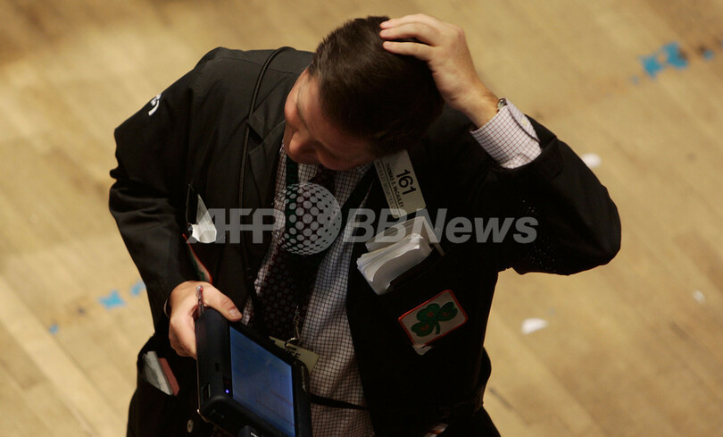 ニューヨーク(New York)株式市場のダウ工業株30種平均(Dow Jones Industrial Average)は、前日比427.47ドル(5.07%)安の7997.28ドルで取引を終えた。終値で8000ドル台を割り込んだのは、2003年3月31日以来、約5年8か月ぶり。