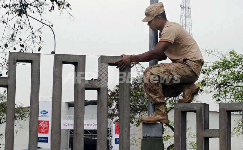 ニュース 政治・経済 APEC首脳会議直前、厳戒態勢のリマ市内 2008年11月20日 15:08 発信地:リマ/ペルー [ 中南米 ペルー ] このニュースをシェア ‹ › ❮ 5/7 ❯ ペルーの首都リマ(Lima)で、アジア太平洋経済協力会議(Asia Pacific Economic Cooperation、APEC)閣僚・首脳会議の会場付近で配線作業を行う兵士(2008年11月19日撮影)。(c)AFP/LAURENT FIEVET 画像作成中 ! 【11月20日 AFP】21-23日にアジア太平洋経済協力会議(Asia Pacific Economic Cooperation、APEC)首脳会議が開かれるペルーの首都リマ(Lima)では、会場や出席者が滞在予定のホテル周辺に厳重な警備態勢が敷かれている。(c)AFP 政治・経済 一覧へ> メディア・報道関係・法人の方向け 写真・動画 購入のお問合せ>