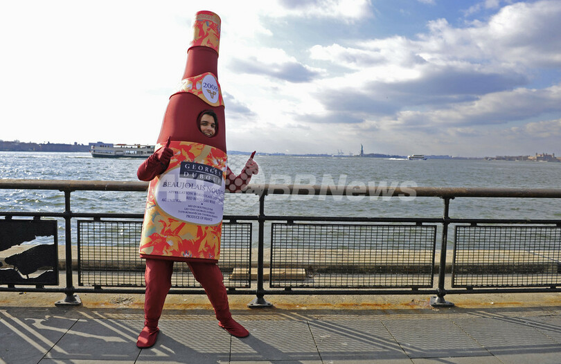 【11月21日 AFP】米ニューヨーク(New York)で20日、フランス産ワインの新酒「ボジョレー・ヌーボー(Beaujolais Nouveau)」解禁を祝うパレードや試飲会が行われた。(c)AFP