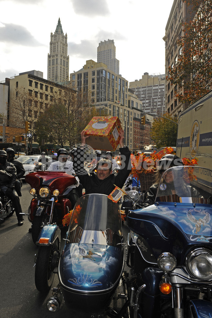 バイクにまたがりボジョレー解禁祝う、NYのライダーたち