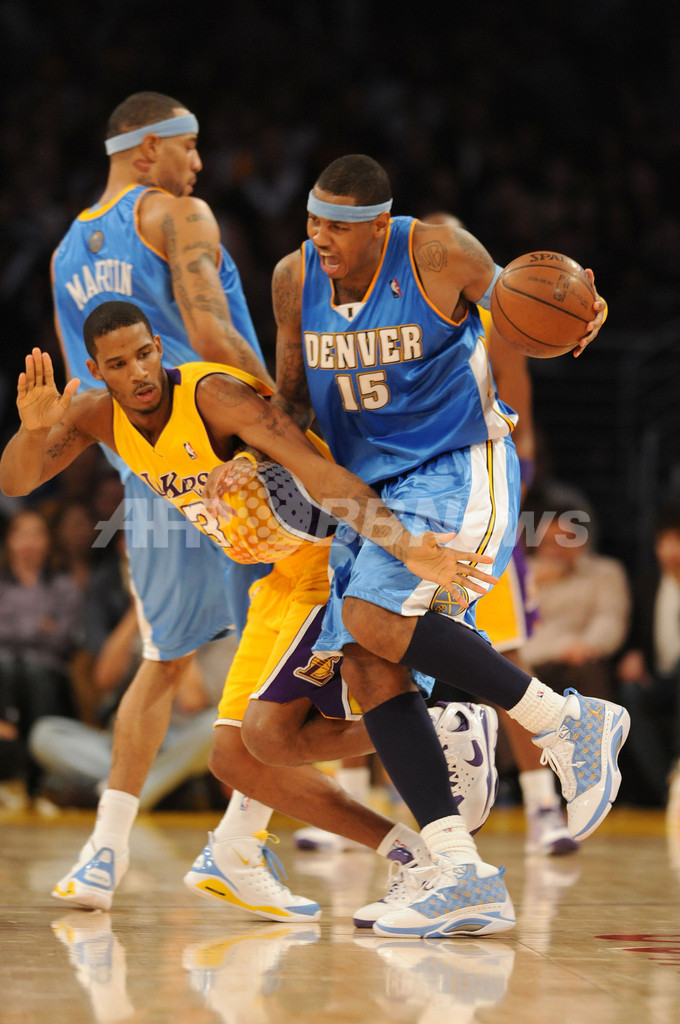 を外すデンバー・ナゲッツのカーメロ・アンソニー(%%Carmelo Anthony%%、右)。(2008年11月21日撮影)(c)AFP/Getty Images/NBAE/Noah Graham