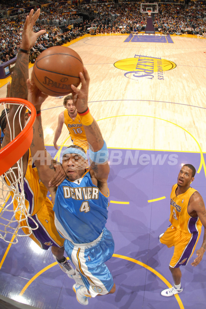 スポーツ バスケットボール レイカーズ ナゲッツ下し連勝を3に伸ばす 2008年11月22日 17:59 発信地:ロサンゼルス/米国 [ 北米 米国 ] このニュースをシェア ‹ › ❮ 10/33 ❯ ロサンゼルス・レイカーズ戦でブロックを受けながらもシュートを狙うデンバー・ナゲッツのケニオン・マーティン(%%Kenyon Martin%%、中央)。(2008年11月21日撮影)(c)AFP/Getty Images/NBAE/Andrew D. Bernstein 画像作成中 ! 【11月22日 AFP】08-09NBA、ロサンゼルス・レイカーズ(Los Angeles Lakers)対デンバー・ナゲッツ(Denver Nuggets)。試合はレイカーズが104-90でナゲッツを下し、連勝を3に伸ばした。(c)AFP/Getty Images バスケットボール 一覧へ> メディア・報道関係・法人の方向け 写真・動画 購入のお問合せ>