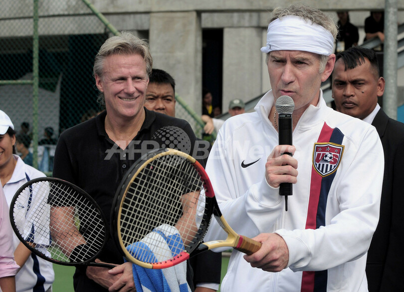 スポーツ テニス ボルグ氏とマッケンロー氏 タイでテニス・クリニックに参加 2008年11月22日 19:01 発信地:バンコク/タイ [ アジア・オセアニア タイ ] このニュースをシェア ‹ › ❮ 1/6 ❯ 男子テニスのエキシビションマッチのためバンコク(Bangkok)を訪れ、地元選手のために開催されたテニス・クリニックに参加するスウェーデンのビョルン・ボルグ(%%Bjorn Borg%%)氏(左)と、米国のジョン・マッケンロー(%%John McEnroe%%)氏(右)。(2008年11月22日撮影)(c)AFP/Pornchai KITTIWONGSAKUL 画像作成中 ! 【11月22日 AFP】男子テニスのエキシビションマッチのためバンコク(Bangkok)を訪れているビョルン・ボルグ(Bjorn Borg)氏(スウェーデン)とジョン・マッケンロー(John McEnroe)氏(米国)は22日、地元選手のための開催されたテニス・クリニックに参加した。(c)AFP テニス 一覧へ> メディア・報道関係・法人の方向け 写真・動画 購入のお問合せ>