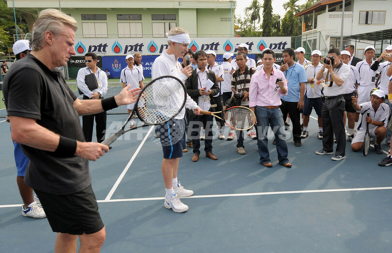 スポーツ テニス ボルグ氏とマッケンロー氏 タイでテニス・クリニックに参加 2008年11月22日 19:01 発信地:バンコク/タイ [ アジア・オセアニア タイ ] このニュースをシェア ‹ › ❮ 6/6 ❯ 男子テニスのエキシビションマッチのためバンコク(Bangkok)を訪れ、地元選手のために開催されたテニス・クリニックに参加するスウェーデンのビョルン・ボルグ(%%Bjorn Borg%%)氏(左)と、米国のジョン・マッケンロー(%%John McEnroe%%)氏(中央)。(2008年11月22日撮影)(c)AFP/Pornchai KITTIWONGSAKUL 画像作成中 ! 【11月22日 AFP】男子テニスのエキシビションマッチのためバンコク(Bangkok)を訪れているビョルン・ボルグ(Bjorn Borg)氏(スウェーデン)とジョン・マッケンロー(John McEnroe)氏(米国)は22日、地元選手のための開催されたテニス・クリニックに参加した。(c)AFP テニス 一覧へ> メディア・報道関係・法人の方向け 写真・動画 購入のお問合せ>