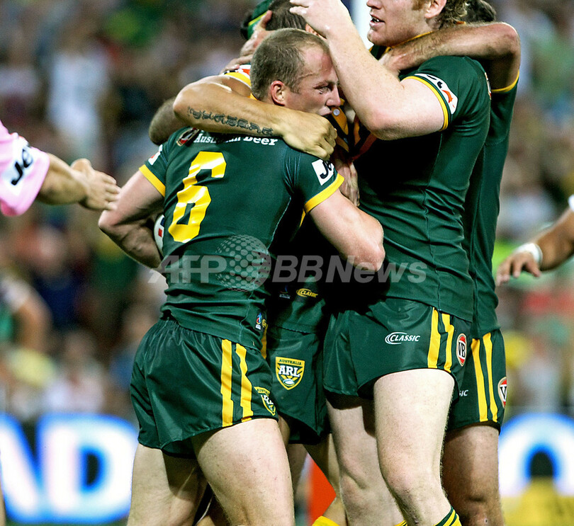 スポーツ ラグビー ニュージーランドがラグビーリーグW杯初制覇 2008年11月22日 21:41 発信地:ブリスベーン/オーストラリア [ アジア・オセアニア オーストラリア ] このニュースをシェア ‹ › ❮ 11/14 ❯ トライを決めてチームメイトと歓喜するオーストラリアのダレン・ロッカー(%%Darren Lockyer%%、中央左)。(2008年11月22日撮影)(c)AFP/Greg WOOD 画像作成中 ! 【11月22日 AFP】ラグビーリーグW杯2008(Rugby League World Cup 2008)・決勝、ニュージーランド対オーストラリア。試合はニュージーランドが34-20でオーストラリアを下し、初優勝を果たした。(c)AFP ラグビー 一覧へ> メディア・報道関係・法人の方向け 写真・動画 購入のお問合せ>