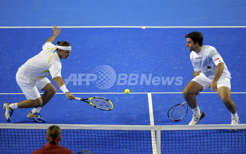 【11月23日 AFP】男子テニス・デビスカップ(2008 Davis Cup)・ワールドグループ2008決勝、アルゼンチン対スペイン。スペインのフェリシアーノ・ロペス(Feliciano Lopez)/フェルナンド・ベルダスコ(Fernando Verdasco)組は、第3試合のダブルスでアルゼンチンのアグスティン・カレリ(Agustin Calleri)/ダビド・ナルバンディアン(David Nalbandian)組と対戦。ロペス/ベルダスコ組はセットカウント3-1(5-7、7-5、7-6、6-3)でカレリ/ナルバンディアン組を下し、スペインは対戦成績を2勝1敗とした。(c)AFP