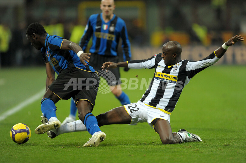 後半17分にサリー・ムンタリ(Sulley Muntari)のゴールで先制したインテルは、その後アレッサンドロ・デル・ピエロ(Alessandro Del Piero)のヘディングシュートをGKジュリオ・セザール(Julio Cesar)がセーブするなどユベントスに得点を許さず、この日試合の無かった2位ACミラン(AC Milan)との勝ち点差を4ポイントまで広げた。(c)AFP/Barnaby Chesterman
