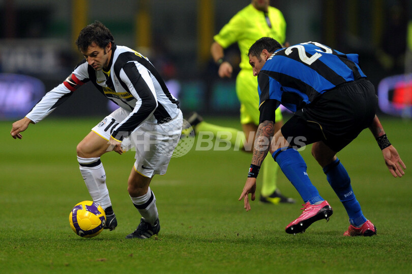 後半17分にサリー・ムンタリ(Sulley Muntari)のゴールで先制したインテルは、その後アレッサンドロ・デル・ピエロ(Alessandro Del Piero)のヘディングシュートをGKジュリオ・セザール(Julio Cesar)がセーブするなどユベントスに得点を許さず、この日試合の無かった2位ACミラン(AC Milan)との勝ち点差を4ポイントまで広げた。(c)AFP/Barnaby Chesterman