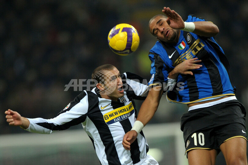 後半17分にサリー・ムンタリ(Sulley Muntari)のゴールで先制したインテルは、その後アレッサンドロ・デル・ピエロ(Alessandro Del Piero)のヘディングシュートをGKジュリオ・セザール(Julio Cesar)がセーブするなどユベントスに得点を許さず、この日試合の無かった2位ACミラン(AC Milan)との勝ち点差を4ポイントまで広げた。(c)AFP/Barnaby Chesterman