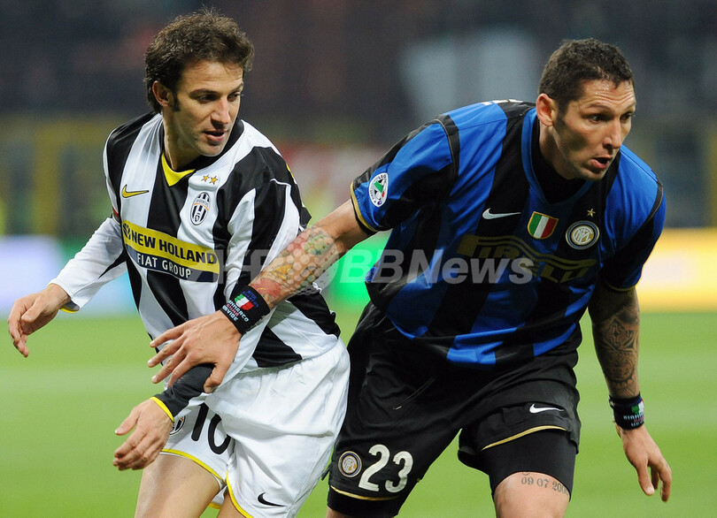 後半17分にサリー・ムンタリ(Sulley Muntari)のゴールで先制したインテルは、その後アレッサンドロ・デル・ピエロ(Alessandro Del Piero)のヘディングシュートをGKジュリオ・セザール(Julio Cesar)がセーブするなどユベントスに得点を許さず、この日試合の無かった2位ACミラン(AC Milan)との勝ち点差を4ポイントまで広げた。(c)AFP/Barnaby Chesterman