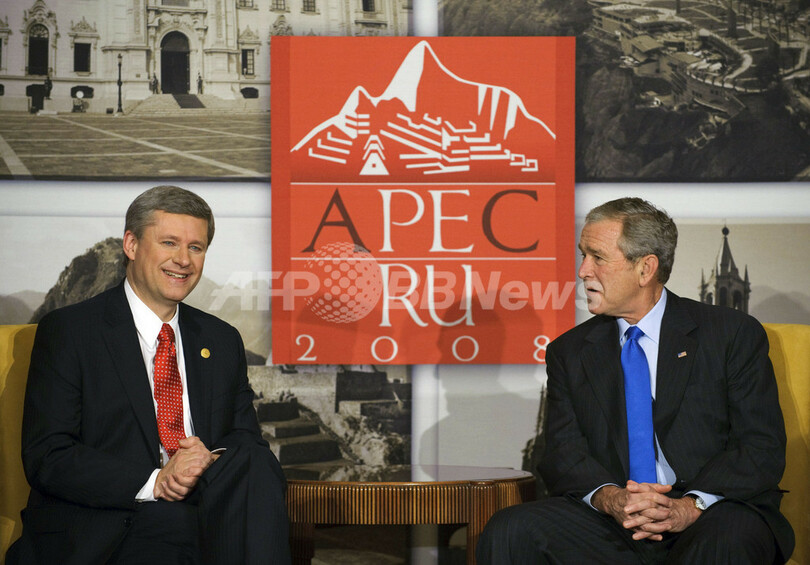 【11月23日 AFP】来年1月20日で任期満了を迎え、バラク・オバマ(Barack Obama)氏に政権を引き継ぐ米国のジョージ・W・ブッシュ(George W. Bush)大統領は22日、ペルーのリマ(Lima)でカナダのスティーブン・ハーパー(Stephen Harper)首相と会談中、自らの大統領としての任期満了について、「定年退職だ」とジョーク混じりに語った。