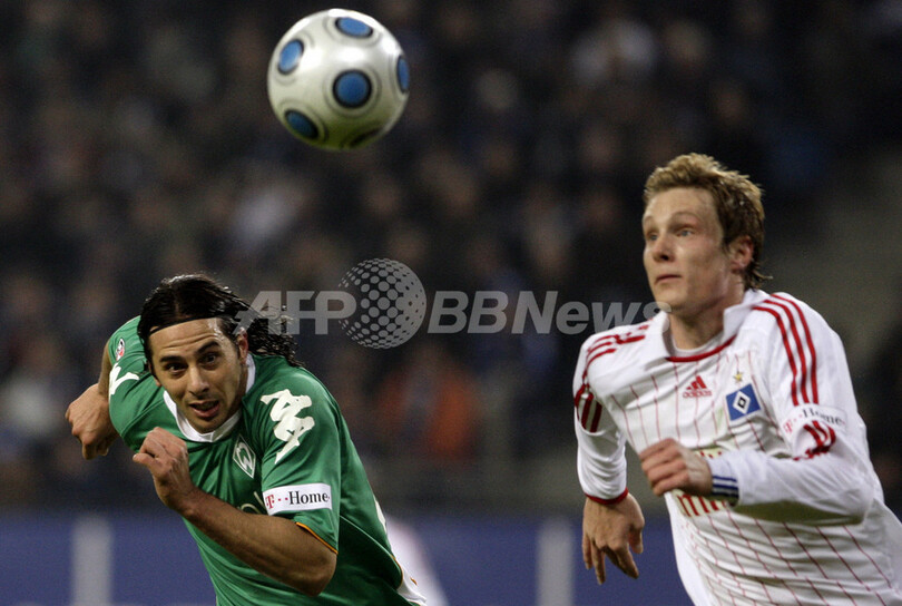 スポーツ サッカー ハンブルガーSV ホームでブレーメンを下す 2008年11月24日 9:32 発信地:ハンブルク/ドイツ [ ヨーロッパ ドイツ ] このニュースをシェア ‹ › ❮ 3/6 ❯ ボールを競り合うハンブルガーSVのマルセル・ヤンセン(%%Marcell Jansen%%、右)とヴェルダー・ブレーメンのクラウディオ・ピサロ(%%Claudio Pizarro%%)。(2008年11月23日撮影)(c)AFP/DDP/ROLAND MAGUNIA 画像作成中 ! 【11月24日 AFP】08-09ドイツ・ブンデスリーガ1部第14節、ハンブルガーSV(Hamburger SV)対ヴェルダー・ブレーメン(Werder Bremen)。試合はハンブルガーが2-1でブレーメンを下した。(c)AFP サッカー 一覧へ> メディア・報道関係・法人の方向け 写真・動画 購入のお問合せ>