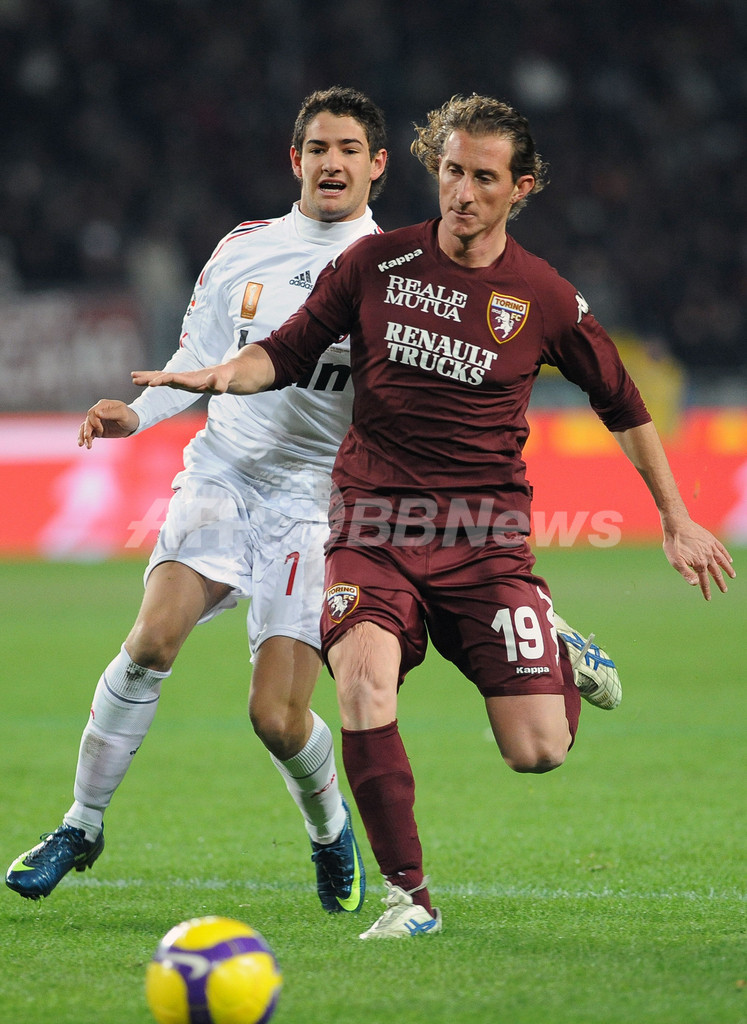 【11月24日 AFP】08-09イタリア・セリエA第13節、トリノ(Torino FC)対ACミラン(AC Milan)。ミランは後半33分にトリノのアレッサンドロ・ロジーナ(Alessandro Rosina)にペナルティーキック(PK)を決められて同点に追いつかれ、試合は2-2の引き分けに終わり、ミランのタイトル獲得の可能性は減少した。