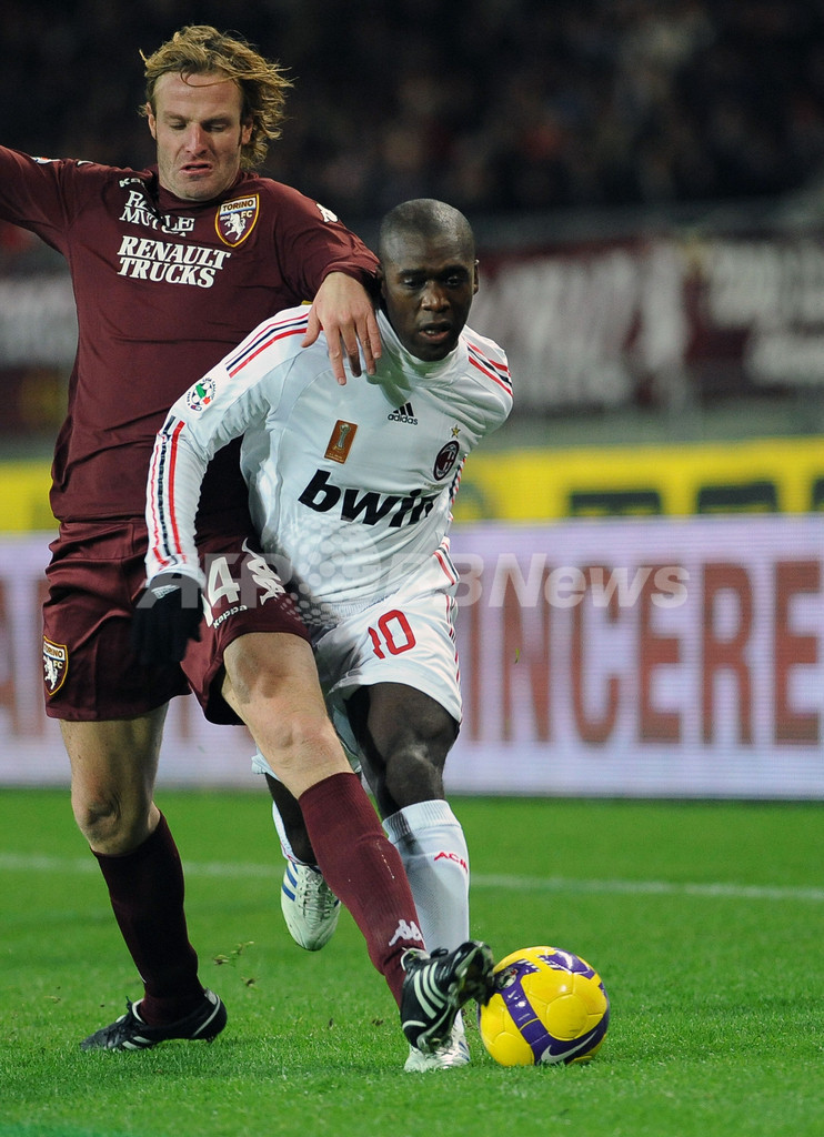 【11月24日 AFP】08-09イタリア・セリエA第13節、トリノ(Torino FC)対ACミラン(AC Milan)。ミランは後半33分にトリノのアレッサンドロ・ロジーナ(Alessandro Rosina)にペナルティーキック(PK)を決められて同点に追いつかれ、試合は2-2の引き分けに終わり、ミランのタイトル獲得の可能性は減少した。