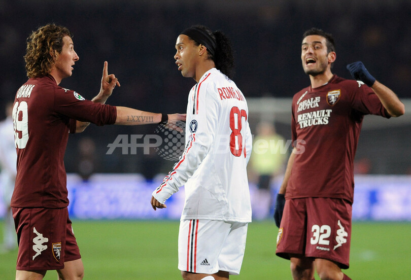 【11月24日 AFP】08-09イタリア・セリエA第13節、トリノ(Torino FC)対ACミラン(AC Milan)。ミランは後半33分にトリノのアレッサンドロ・ロジーナ(Alessandro Rosina)にペナルティーキック(PK)を決められて同点に追いつかれ、試合は2-2の引き分けに終わり、ミランのタイトル獲得の可能性は減少した。
