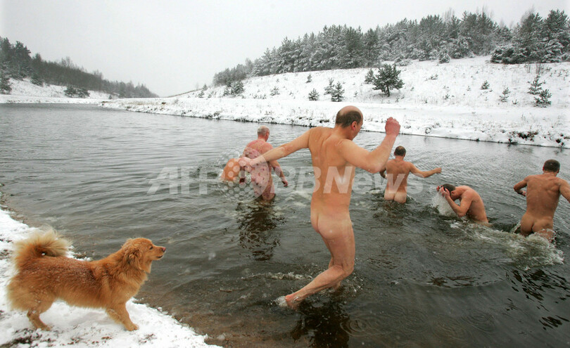 ニュース ライフ 雪のなか厳寒の川に全裸で「ドボン」、ベラルーシ 2008年11月24日 18:53 発信地:ミンスク/ベラルーシ [ ロシア・CIS ベラルーシ ] このニュースをシェア ‹ › ❮ 3/3 ❯ ベラルーシの首都ミンスク(Minsk)から西に50キロのViazynka村で、ヴィリア川に全裸で飛び込むベラルーシ・ヘルシークラブ「Optimalist」のメンバーたち(2008年11月23日撮影)。(c)AFP/VIKTOR DRACHEV 画像作成中 ! 【11月24日 AFP】ベラルーシの首都ミンスク(Minsk)から西に50キロのViazynka村で23日、ベラルーシ・ヘルシークラブ「Optimalist」が寒中水浴を行い、氷のような冷たさのヴィリア川に全裸でつかった。(c)AFP ライフ 一覧へ> メディア・報道関係・法人の方向け 写真・動画 購入のお問合せ>