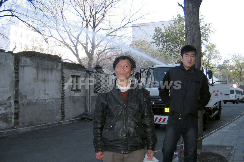 取り壊された家屋は、1951年に薫氏の両親が購入したもの。生家を破壊された衝撃に身を震わせながら、薫氏は「家よりももっと重要なことは、妻の釈放だ」とAFP記者の取材に涙ながらに訴えた。薫氏によると、倪氏は不法に逮捕されたうえ、殴るなどの暴行を受けて強制的に自宅取り壊しに同意させられたという。(c)AFP/Robert J. Saiget