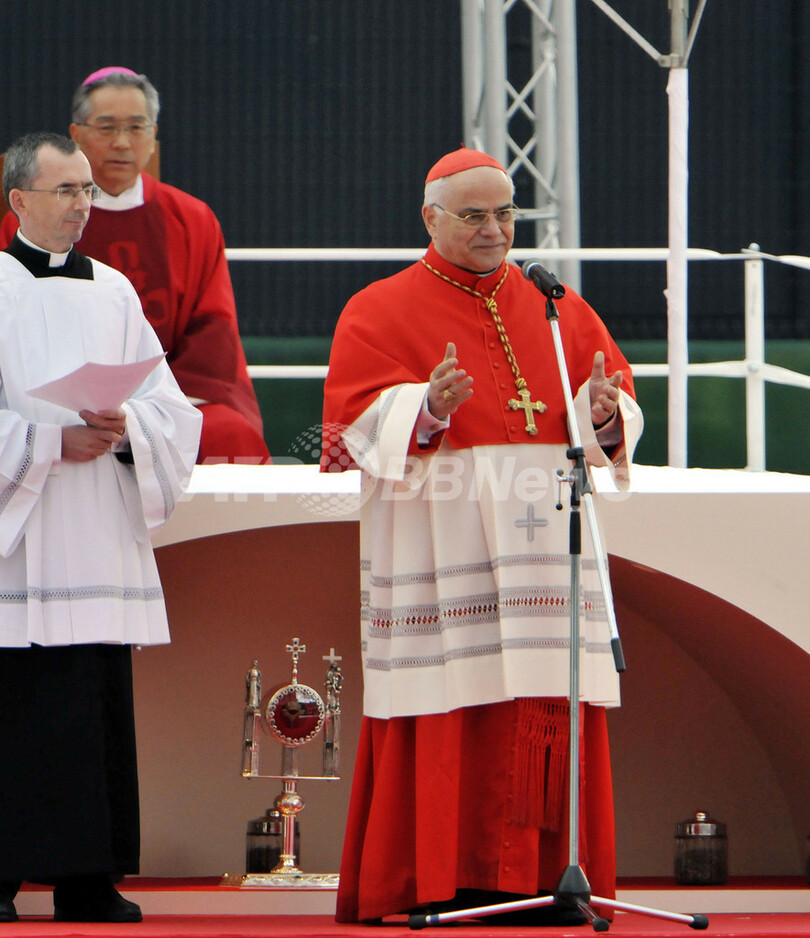 【11月25日 AFP】長崎市内の県営野球場で24日、江戸時代初期に幕府の迫害で殉教したキリシタン188人に、「聖人」に次ぐ「福者」の位を授ける「列福式」が開かれた。日本で初めて行われた列福式には、式典はローマ法王ベネディクト16世(Benedict XVI)の代理、法王庁の前列聖省長官ホセ・サライバ・マルチンス(Jose Saraiva Martins)枢機卿によって執り行われ、国内やアジアから3万人を超えるカトリック教徒が参列した。(c)AFP
