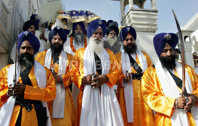 24日に第9代教祖テーグ・バハードゥル(Tegh Bahadur)の命日の記念式典が行われるため、その準備の一環の行事だ。テーグ・バハードゥルは1675年、時のムガール皇帝の命で処刑された(2008年11月24日撮影)。(c)AFP/NARINDER NANU