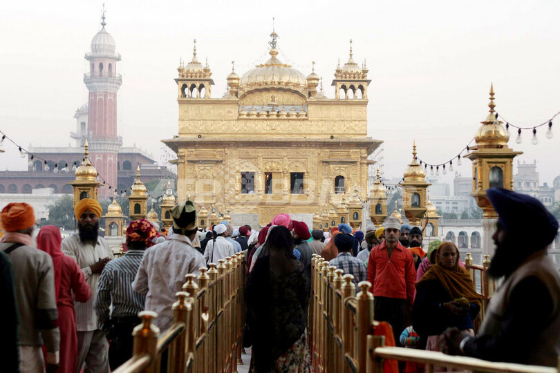 シーク教の総本山「黄金寺院」で聖典を運ぶ祭典