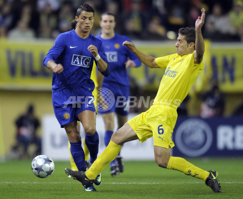 【11月26日 AFP】(記事更新、写真追加)サッカー欧州チャンピオンズリーグ2008-09(UEFA Champions League 2008-09)グループリーグE第5節、ビジャレアル(Villarreal CF)対マンチェスター・ユナイテッド(Manchester United)。前年の同大会を(UEFA Champions League 2007-08)を制したマンチェスター・ユナイテッドは、同大会のホーム戦で無敗を誇るビジャレアルと0-0で引き分けたためグループリーグ首位通過を確定できなかったが、ビジャレアルと共に決勝トーナメント進出を決めた。(c)AFP/Phil Seery