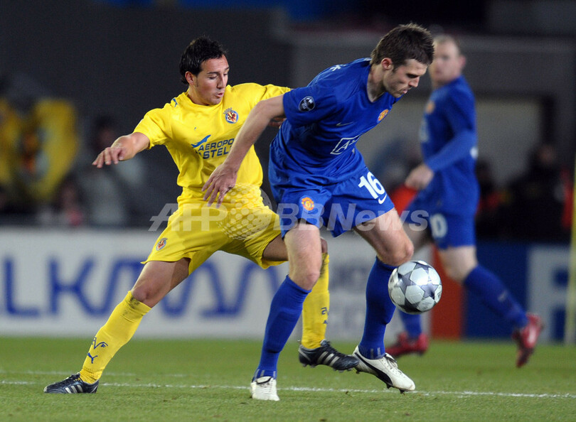 【11月26日 AFP】(記事更新、写真追加)サッカー欧州チャンピオンズリーグ2008-09(UEFA Champions League 2008-09)グループリーグE第5節、ビジャレアル(Villarreal CF)対マンチェスター・ユナイテッド(Manchester United)。前年の同大会を(UEFA Champions League 2007-08)を制したマンチェスター・ユナイテッドは、同大会のホーム戦で無敗を誇るビジャレアルと0-0で引き分けたためグループリーグ首位通過を確定できなかったが、ビジャレアルと共に決勝トーナメント進出を決めた。(c)AFP/Phil Seery