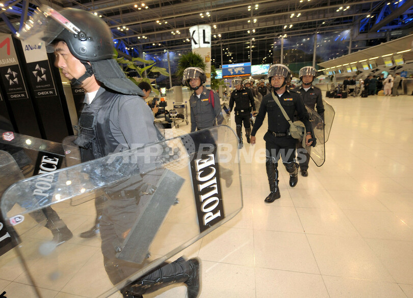 【11月26日 AFP】(一部更新、写真追加)反タクシン元首相派の市民団体「民主市民連合(People's Alliance for Democracy、PAD)」の支持者数千人が占拠している、タイ・バンコク(Bangkok)のバンコク(スワンナプーム)国際空港(Suvarnabhumi Airport)で26日、爆発が起きた。救急医療当局が明らかにした。