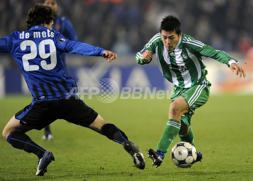 スポーツ サッカー サンテティエンヌ クラブ・ブルージュと引き分けるも決勝トーナメント進出 2008年11月28日 8:20 発信地:ブルージュ/ベルギー [ ヨーロッパ ベルギー ] このニュースをシェア ‹ › ❮ 1/9 ❯ クラブ・ブルージュのヘルトヤン・デ・メッツ(%%Gertjan De Mets%%)のディフェンスに対しドリブル突破を仕掛けるサンテティエンヌの松井大輔(%%Daisuke Matsui%%、右)。(2008年11月27日撮影)(c)AFP/JOHN THYS 画像作成中 ! 【11月28日 AFP】(一部更新)サッカーUEFA杯2008-09(UEFA Cup 2008-09)グループリーグG第3節、クラブ・ブルージュ(Club Brugge)対サンテティエンヌ(AS Saint-Etienne)。試合は1-1の引き分けに終わり、この結果サンテティエンヌは3試合を終えて2勝1分けで勝ち点を7として決勝トーナメント進出を決めた。(c)AFP サッカー 一覧へ> メディア・報道関係・法人の方向け 写真・動画 購入のお問合せ>