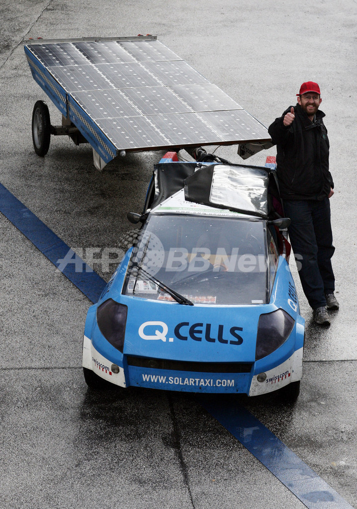 【12月1日 AFP】自家製の太陽電池式自動車「ソーラータクシー(Solartaxi)」で世界一周の旅を続けるスイスの冒険家ルイス・パーマー(Louis Palmer)さんが前月、ドイツ北部のハンブルク(Hamburg)に到着した。
