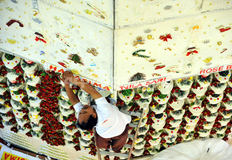 ニュース ライフ こぼれ話 高さ33メートルの巨大クリスマスケーキ、菓子職人が奮闘中 2008年12月1日 9:18 発信地:ジャカルタ/インドネシア [ アジア・オセアニア インドネシア ] このニュースをシェア ‹ › ❮ 4/4 ❯ インドネシアの首都ジャカルタ(Jakarta)市内のショッピングモールに登場した、クリスマスツリー型の巨大ケーキ。完成後のサイズは高さ33メートル、直径9メートルとなる。ショッピングモールのクリスマスシーズン用アトラクションの一部として、ケーキ職人Nila Sariさんが制作中(2008年11月28日撮影)。(c)AFP/ADEK BERRY 画像作成中 ! 【12月1日 AFP】インドネシアの首都ジャカルタ(Jakarta)市内のショッピングモールに登場した、クリスマスツリー型の巨大ケーキ。完成後のサイズは高さ33メートル、直径9メートルとなる。ショッピングモールのクリスマスシーズン用アトラクションの一部として、ケーキ職人Nila Sariさんが制作中。(c)AFP ライフ 一覧へ> メディア・報道関係・法人の方向け 写真・動画 購入のお問合せ>