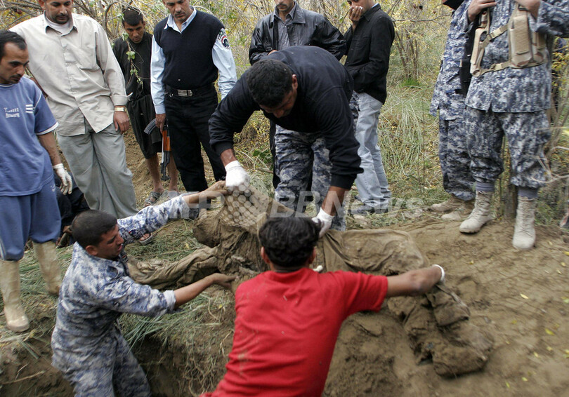 【11月30日 AFP】イラク政府は29日、首都バグダッド(Baghdad)北、ディヤラ(Diyala)州の村Abu Toamaで、今年初めに国際テロ組織アルカイダ(Al-Qaeda)よって殺害されたとみられる遺体33体が地中に埋められているのを発見したと発表した。