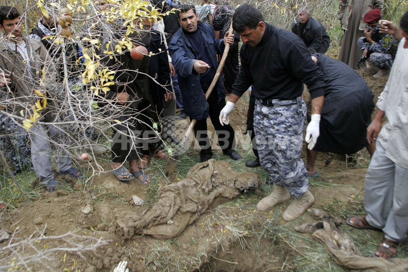 【11月30日 AFP】イラク政府は29日、首都バグダッド(Baghdad)北、ディヤラ(Diyala)州の村Abu Toamaで、今年初めに国際テロ組織アルカイダ(Al-Qaeda)よって殺害されたとみられる遺体33体が地中に埋められているのを発見したと発表した。