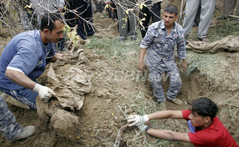 【11月30日 AFP】イラク政府は29日、首都バグダッド(Baghdad)北、ディヤラ(Diyala)州の村Abu Toamaで、今年初めに国際テロ組織アルカイダ(Al-Qaeda)よって殺害されたとみられる遺体33体が地中に埋められているのを発見したと発表した。