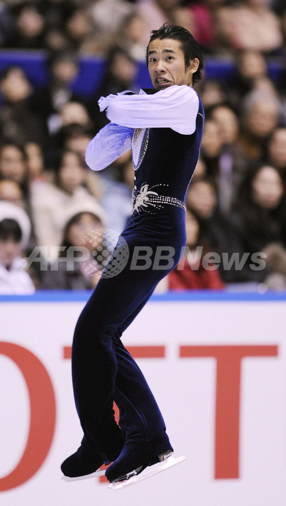 【11月30日 AFP】(写真追加)08-09フィギュアスケートGPシリーズ第6戦、NHK杯(NHK Trophy 2008)男子シングル・フリースケーティング(FS)。ショートプログラム(SP)を終えて首位につけた日本の織田信成(Nobunari Oda)は、同種目でも首位となる154.55点を記録し合計236.18点で優勝を果たした。