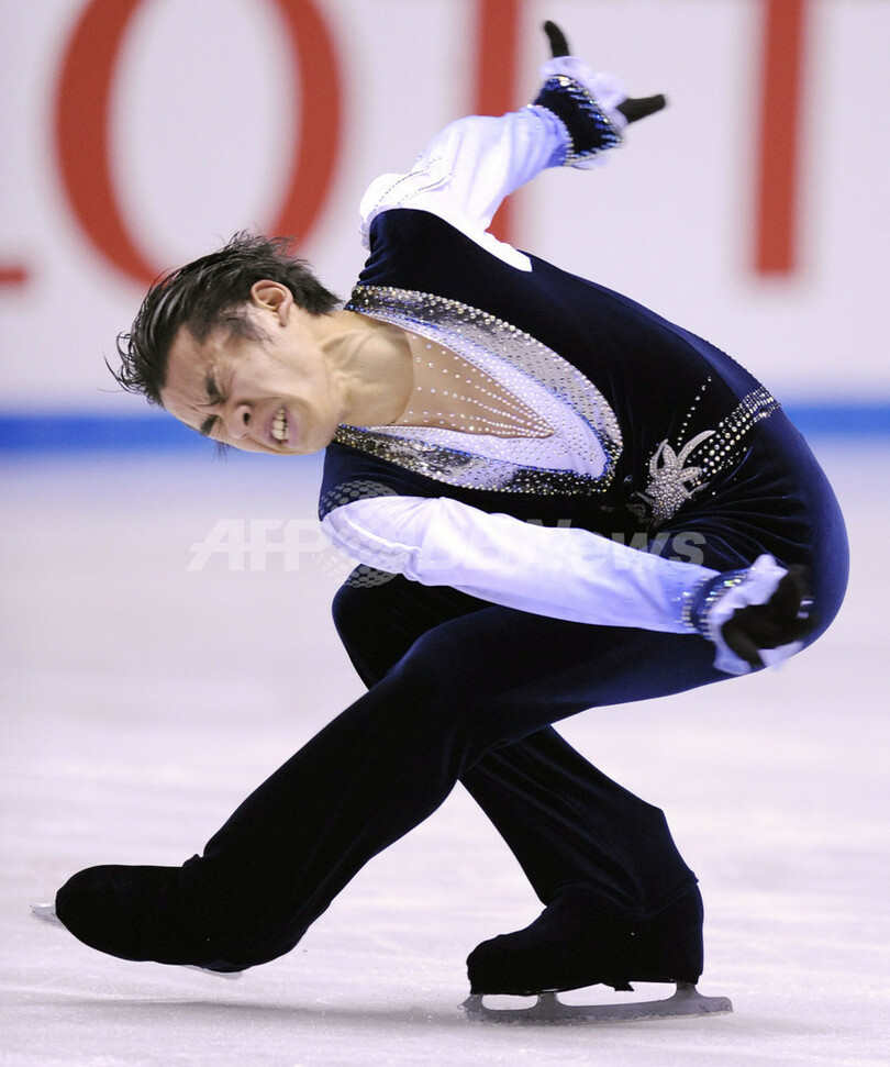 【11月30日 AFP】(写真追加)08-09フィギュアスケートGPシリーズ第6戦、NHK杯(NHK Trophy 2008)男子シングル・フリースケーティング(FS)。ショートプログラム(SP)を終えて首位につけた日本の織田信成(Nobunari Oda)は、同種目でも首位となる154.55点を記録し合計236.18点で優勝を果たした。