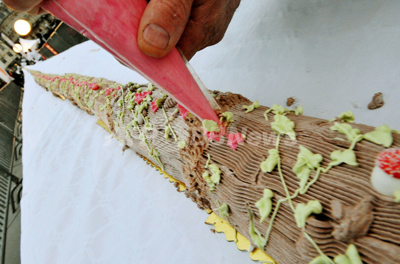 ニュース ライフ こぼれ話 世界最長の丸太型クリスマスケーキは158.53メートル 2008年12月1日 15:31 発信地:ボルドー/フランス [ ヨーロッパ フランス ] このニュースをシェア ‹ › ❮ 1/4 ❯ フランス南西部の都市ボルドー(Bordeaux)で、世界最長の丸太型のクリスマス用ロールケーキ「yule log」作りに奮闘中の職人たち。ケーキの長さは158.53メートル(2008年11月27日撮影)。(c)AFP 画像作成中 ! 【12月1日 AFP】フランス南西部の都市ボルドー(Bordeaux)で、世界最長の丸太型のクリスマス用ロールケーキ「yule log」作りに取り組む職人たち。ケーキの長さは158.53メートル。(c)AFP ライフ 一覧へ> メディア・報道関係・法人の方向け 写真・動画 購入のお問合せ>