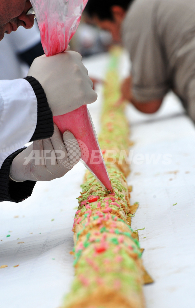 ニュース ライフ こぼれ話 世界最長の丸太型クリスマスケーキは158.53メートル 2008年12月1日 15:31 発信地:ボルドー/フランス [ ヨーロッパ フランス ] このニュースをシェア ‹ › ❮ 2/4 ❯ フランス南西部の都市ボルドー(Bordeaux)で、世界最長の丸太型のクリスマス用ロールケーキ「yule log」作りに奮闘中の職人たち。ケーキの長さは158.53メートル(2008年11月27日撮影)。(c)AFP 画像作成中 ! 【12月1日 AFP】フランス南西部の都市ボルドー(Bordeaux)で、世界最長の丸太型のクリスマス用ロールケーキ「yule log」作りに取り組む職人たち。ケーキの長さは158.53メートル。(c)AFP ライフ 一覧へ> メディア・報道関係・法人の方向け 写真・動画 購入のお問合せ>