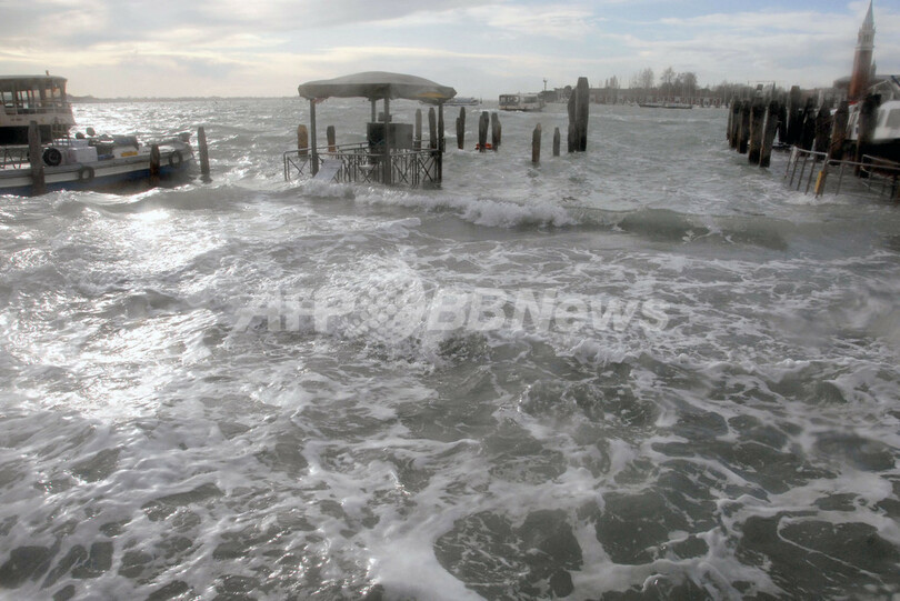 気象関係者らは、過去数日間のうちにイタリア北部で豪雨と豪雪が発生したことに加え、強い南寄りの風が続いていたことで、記録的な高潮を招いたとみている。(c)AFP