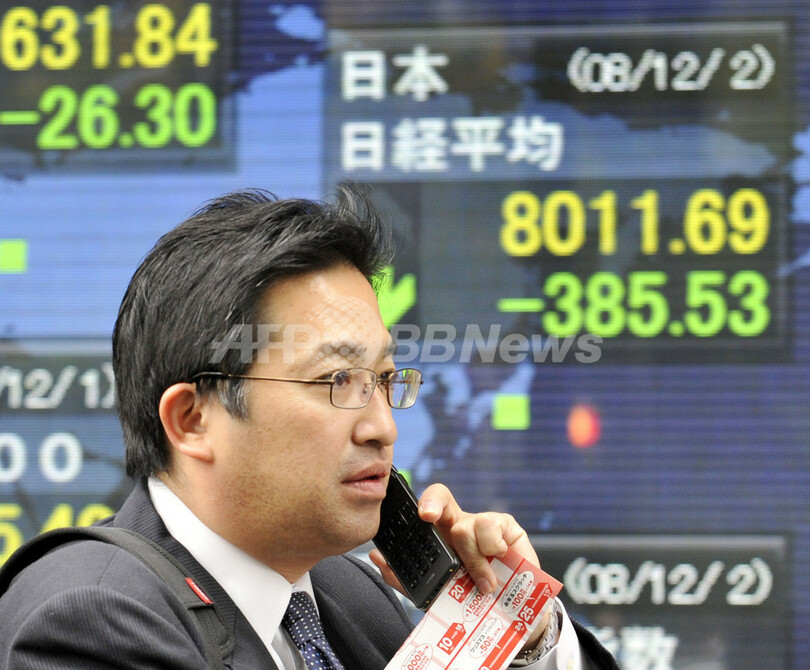 ニュース 政治・経済 東京株、急落 日経平均終値8000円割れ 2008年12月2日 18:23 発信地:東京 [ アジア・オセアニア 東京 ] このニュースをシェア ‹ › ❮ 4/6 ❯ 都内で、株価ボードの前を通り過ぎる男性(2008年12月2日撮影)。(c)AFP/Yoshikazu TSUNO 画像作成中 ! 【12月2日 AFP】(写真追加)2日の東京株式市場は、前日の米株式市場の急反落を受け、急落。日経平均株価の終値は、前日比533円53銭(6.35%)安の7863円69銭となった。(c)AFP 政治・経済 一覧へ> メディア・報道関係・法人の方向け 写真・動画 購入のお問合せ>
