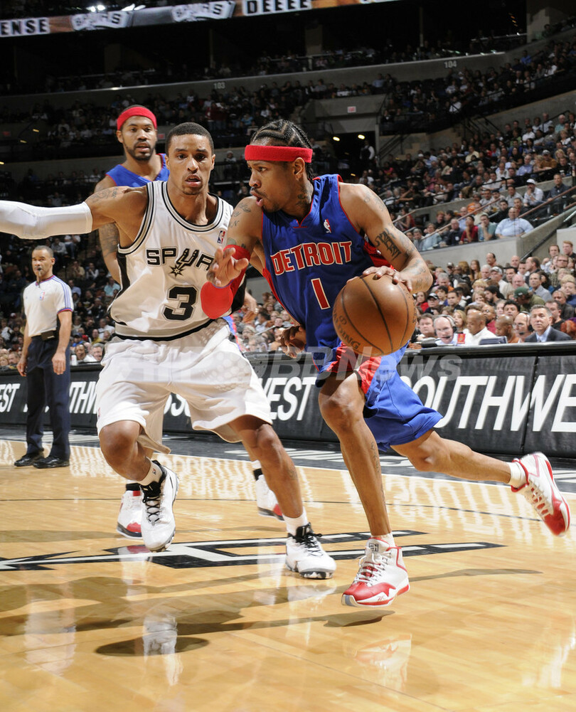スポーツ バスケットボール ピストンズ 敵地でスパーズを下す 2008年12月3日 14:25 発信地:サンアントニオ/米国 [ 北米 米国 ] このニュースをシェア ‹ › ❮ 1/11 ❯ サンアントニオ・スパーズ戦でジョージ・ヒル(%%George Hill%%、左)をドリブルでかわそうとするデトロイト・ピストンズのアレン・アイバーソン(%%Allen Iverson%%)。(2008年12月2日撮影)(c)AFP/Getty Images/NBAE/D. Clarke Evan 画像作成中 ! 【12月3日 AFP】08-09NBA、サンアントニオ・スパーズ(San Antonio Spurs)対デトロイト・ピストンズ(Detroit Pistons)。試合はピストンズが89-77でスパーズを下した。(c)AFP/Getty Images バスケットボール 一覧へ> メディア・報道関係・法人の方向け 写真・動画 購入のお問合せ>