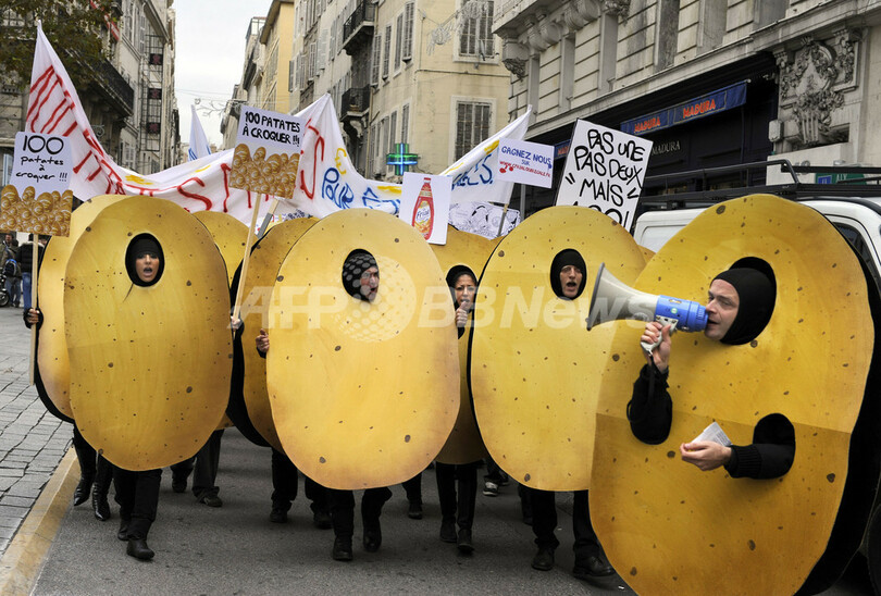 ニュース ライフ こぼれ話 じゃがいもがデモ行進? フランス 2008年12月4日 6:48 発信地:マルセイユ/フランス [ ヨーロッパ フランス ] このニュースをシェア ‹ › ❮ 1/2 ❯ フランス南東部マルセイユ(Marseille)で行われたCM撮影で、デモ行進をする「じゃがいも」に扮(ふん)した人びと(2008年12月3日撮影)。(c)AFP/GERARD JULIEN 画像作成中 ! 【12月4日 AFP】フランス南東部のマルセイユ(Marseille)で3日、じゃがいもの格好をした人びとが市街を行進した。 食用油のCM撮影で、抗議デモのシーンを撮影したとのこと。(c)AFP ライフ 一覧へ> メディア・報道関係・法人の方向け 写真・動画 購入のお問合せ>