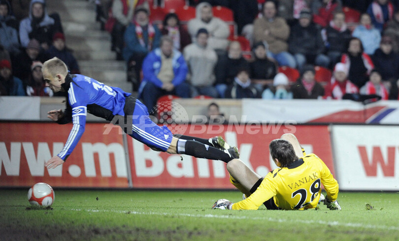 スポーツ サッカー ハンブルガーSV スラヴィア・プラハを下し決勝トーナメントへ 2008年12月5日 8:53 発信地:プラハ/チェコ [ ヨーロッパ チェコ ] このニュースをシェア ‹ › ❮ 2/6 ❯ スラビア・プラハのゴールキーパー(GK)マルティン・バニアク(%%Martin Vaniak%%、下)からスライディングタックルを受けてピッチに倒れるハンブルガーSVのダビド・ヤロリム(%%David Jarolim%%)。(2008年12月4日撮影)(c)AFP/MICHAL CIZEK 画像作成中 ! 【12月5日 AFP】サッカーUEFA杯2008-09(UEFA Cup 2008-09)グループリーグF第4節、スラヴィア・プラハ(Slavia Prague)対ハンブルガーSV(Hamburger SV)。試合はハンブルガーSVが2-0で勝利し、決勝トーナメント進出を決めた。(c)AFP サッカー 一覧へ> メディア・報道関係・法人の方向け 写真・動画 購入のお問合せ>